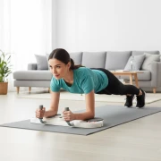 - Plank: klasyczny, wysoki/nisko na przedramionach, plank z przejściem.